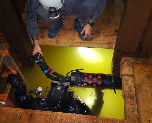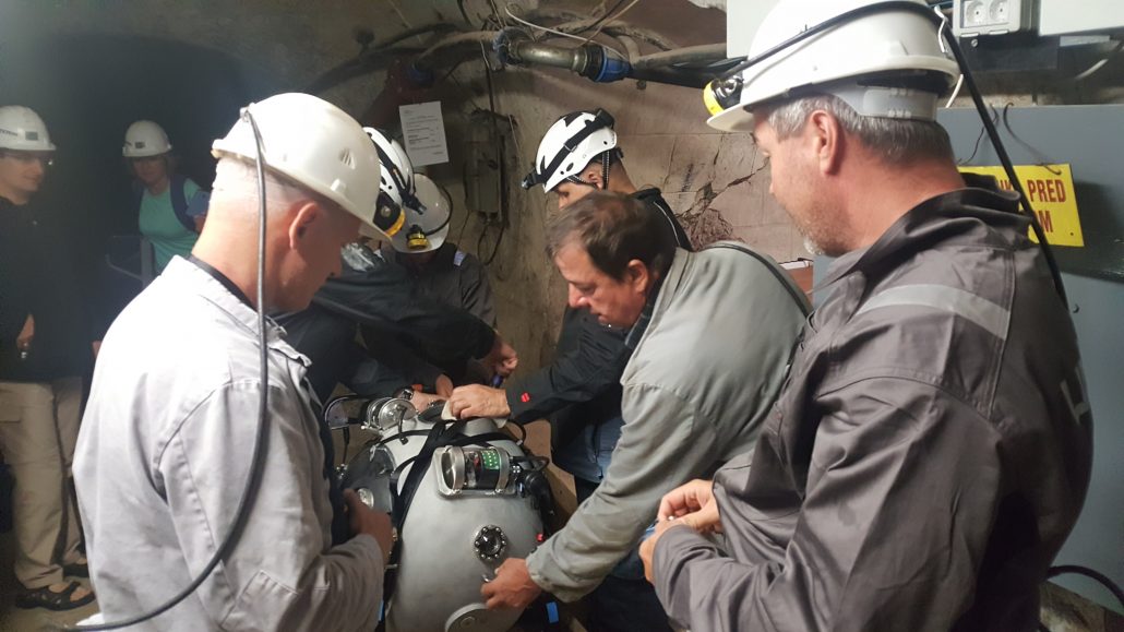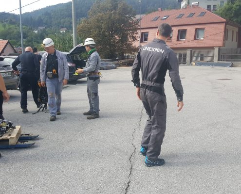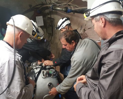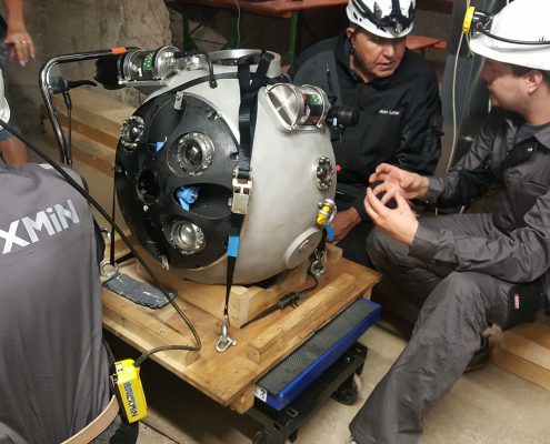 Preparations started with setting-up the communication equipment and control station. First, the robot will be dry-tested in the mine in order to make sure that all the equipment is ready. After, UX-1 will be transported to the water level, at approximately 200m below the surface. At this point, it will be launched into the water to explore the flooded underground parts of the 500 years old mine in Idrija!