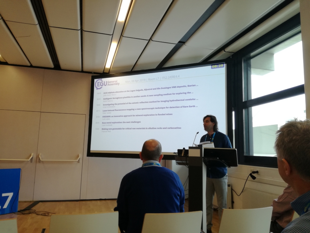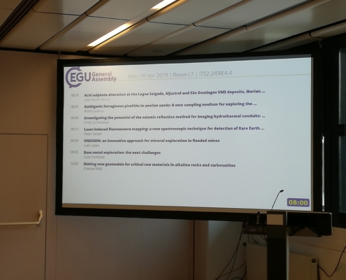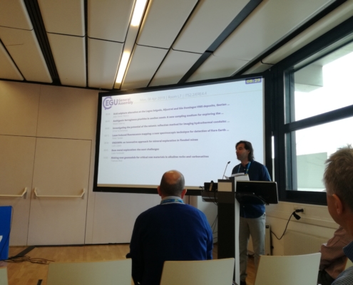 The UNEXMIN project was once again present at the EGU General Assembly following the example of 2017. In this year’s edition, UNEXMIN was featured under the session “The New Roadmap for Mineral Exploration: Challenges and Innovative approaches“. The talk was held on the 8th of April before an audience of 60 geoscientists from all over the world to whom this innovative project was communicated.