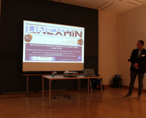UNEXMIN’s presentation, entitled “UNEXMIN: an innovative approach for mineral exploration in flooded mines” fitted perfectly under the aim of the session and contributed to discussion on this and other innovative mineral exploration techniques, both during and after the session. Interest in the UNEXMIN topic was translated into questions at the Q&A session that followed the presentation. The past, current and future state of the project and its related developments were discussed.