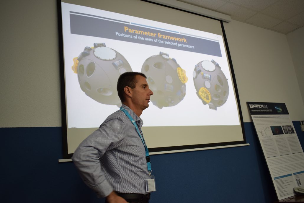On the 25th and 26th of October, UNEXMIN partners met in Madrid at UPM’s facilities for a follow-up workshop related to developments of the UX-1 robot. Of importance to this meeting were UNIM, TUT, UPM, INESC and RCI – the partners responsible for the robot’s hardware, software and post-processing and data analysis. A constant exchange of information between these partners is vital for the project’s development. This was particularly noted after the latest crucial decision made for UX-1, the integrated pressure hull approach.