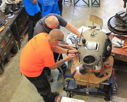 Last week meant the last half of the second UNEXMIN field trials, following on the work done in the first week. During the last days of trials at the Idrija Mercury Mine, an UNESCO’s Heritage Site, the UNEXMIN technical teams, had a full-time job with the launching, maintenance and monitoring of the UX-1 robot for and during its dives at the Idrija’s flooded shafts and tunnels.