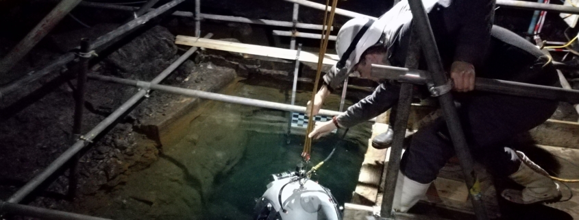 After a successful second week, where the team met its major objectives – depths reached, areas mapped, discoveries made -, UNEXMIN is now proceeding with its last days in the UK. The aim is to reach even deeper and explore more flooded tunnels and galleries in a mine that has not been seen for the last 160 years… until UX-1 arrived!