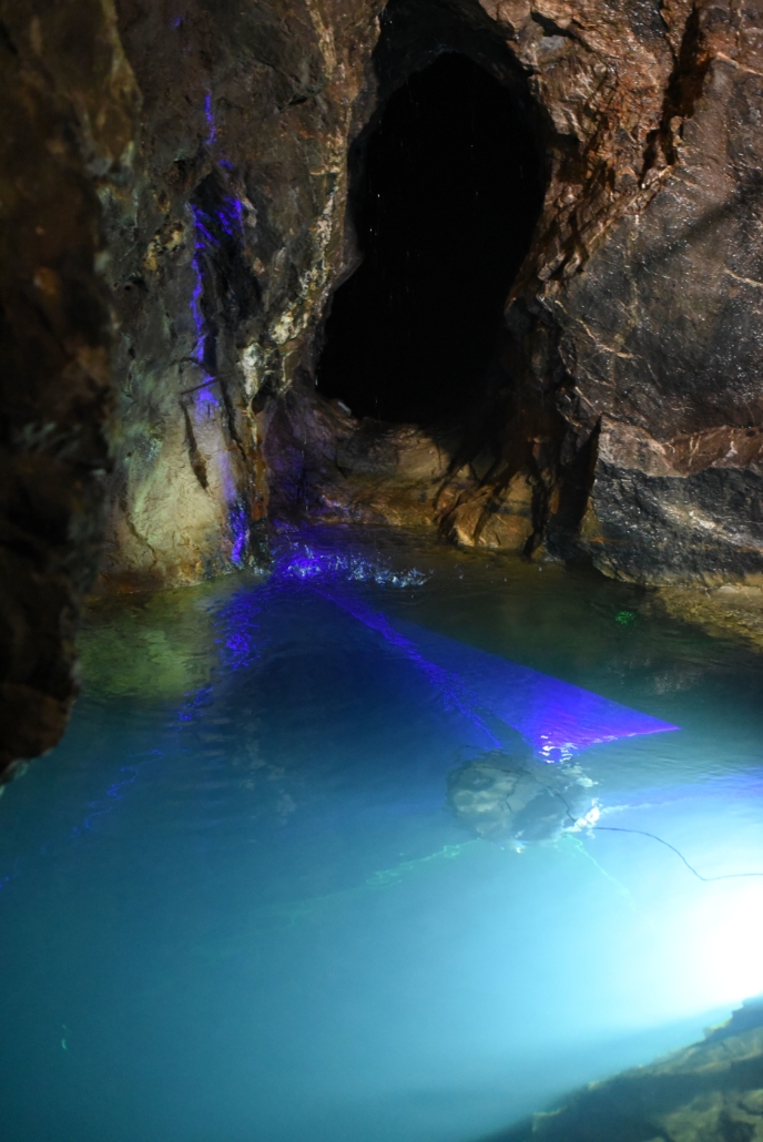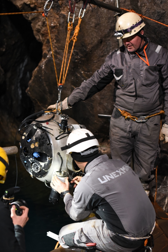 - 27th of May (Monday): The Pipe shaft was partially explored for the first time. The UX-1a robot dived to 57.7m depth and was able to map a huge upper mineralised pipe cavity from 17 to 57m with its sonar. A horizontal passage at the bottom was identified but not explored. The pipe shaft is important since it intersects most of Ecton’s copper orebodies mined in the past.