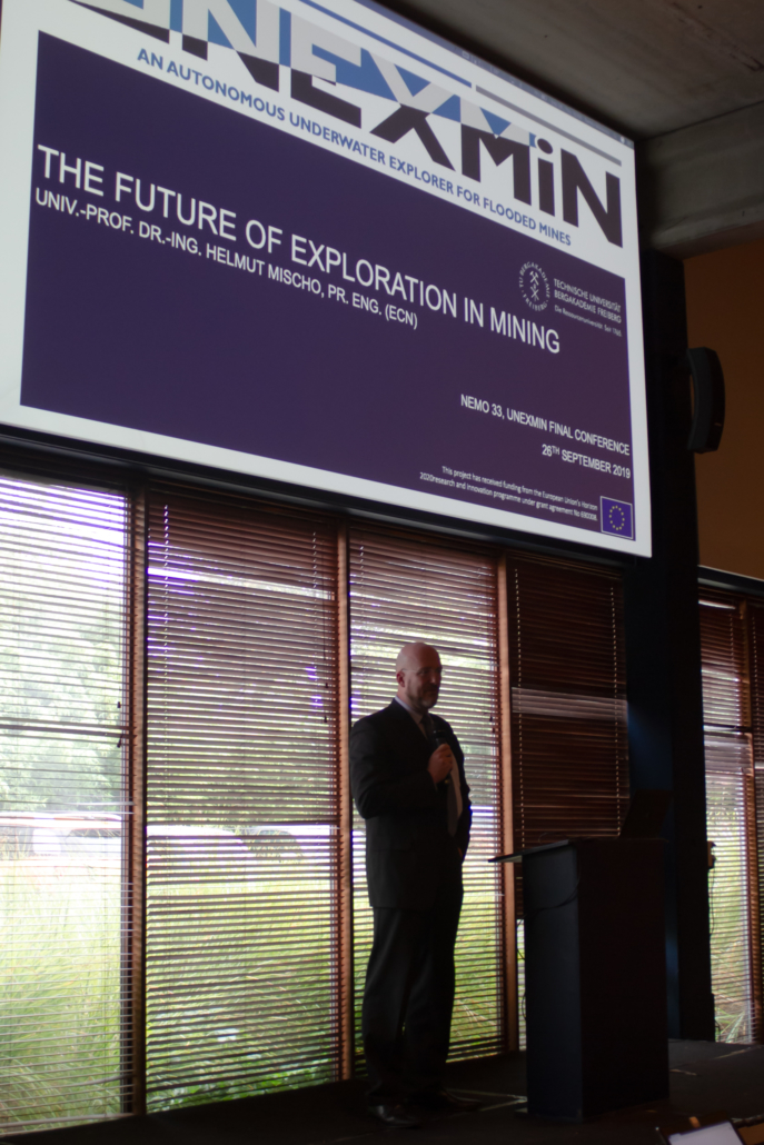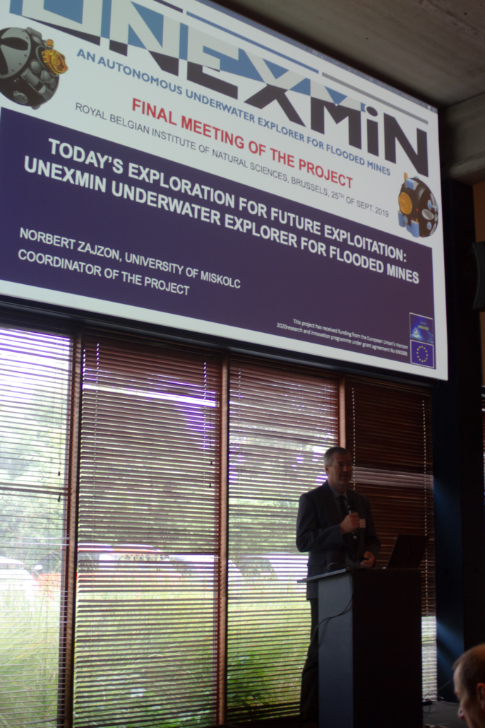 The Horizon 2020-funded UNEXMIN project held its final conference in Brussels on 26th September 2019. Project outcomes were presented and discussed and a UX-1 robot was demonstrated in a pool.